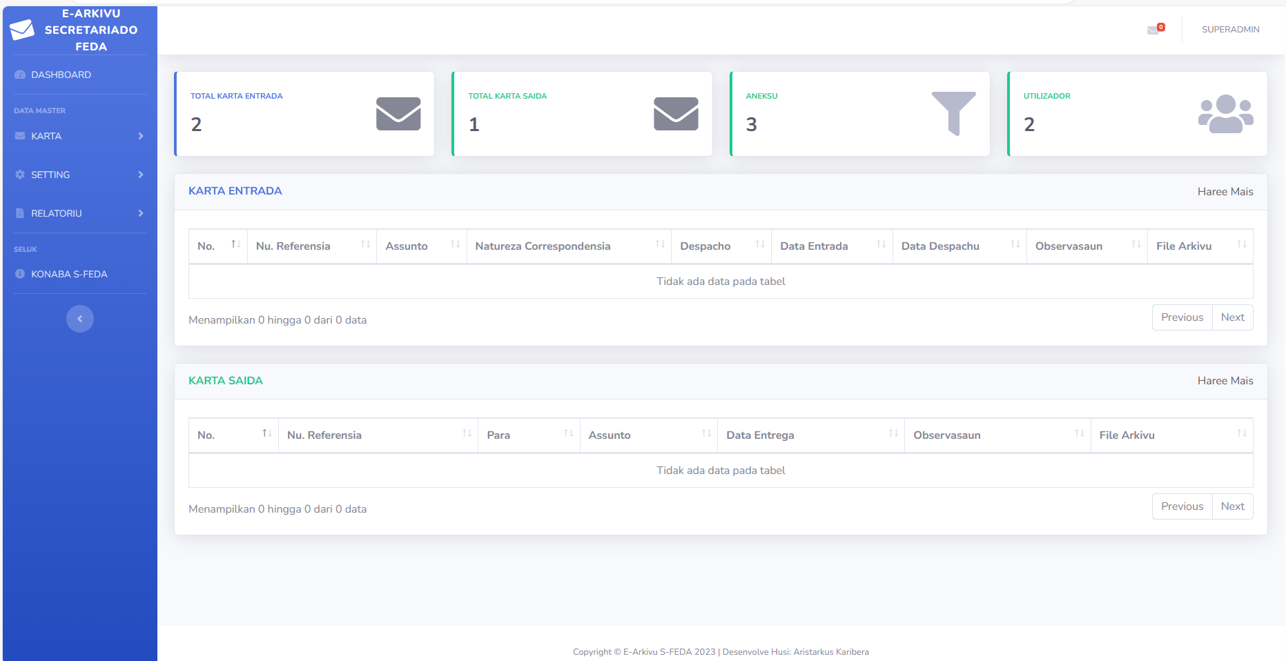 6. Designed and Developed Database Web System about "e-Arkivu Karta Entrada no Karta Saida" for Administration Secretariado FEDA